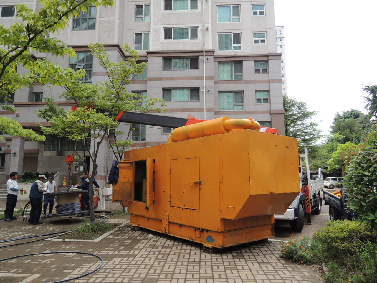 아파트 재해 복구 현장에 비상 발전기 임대현장