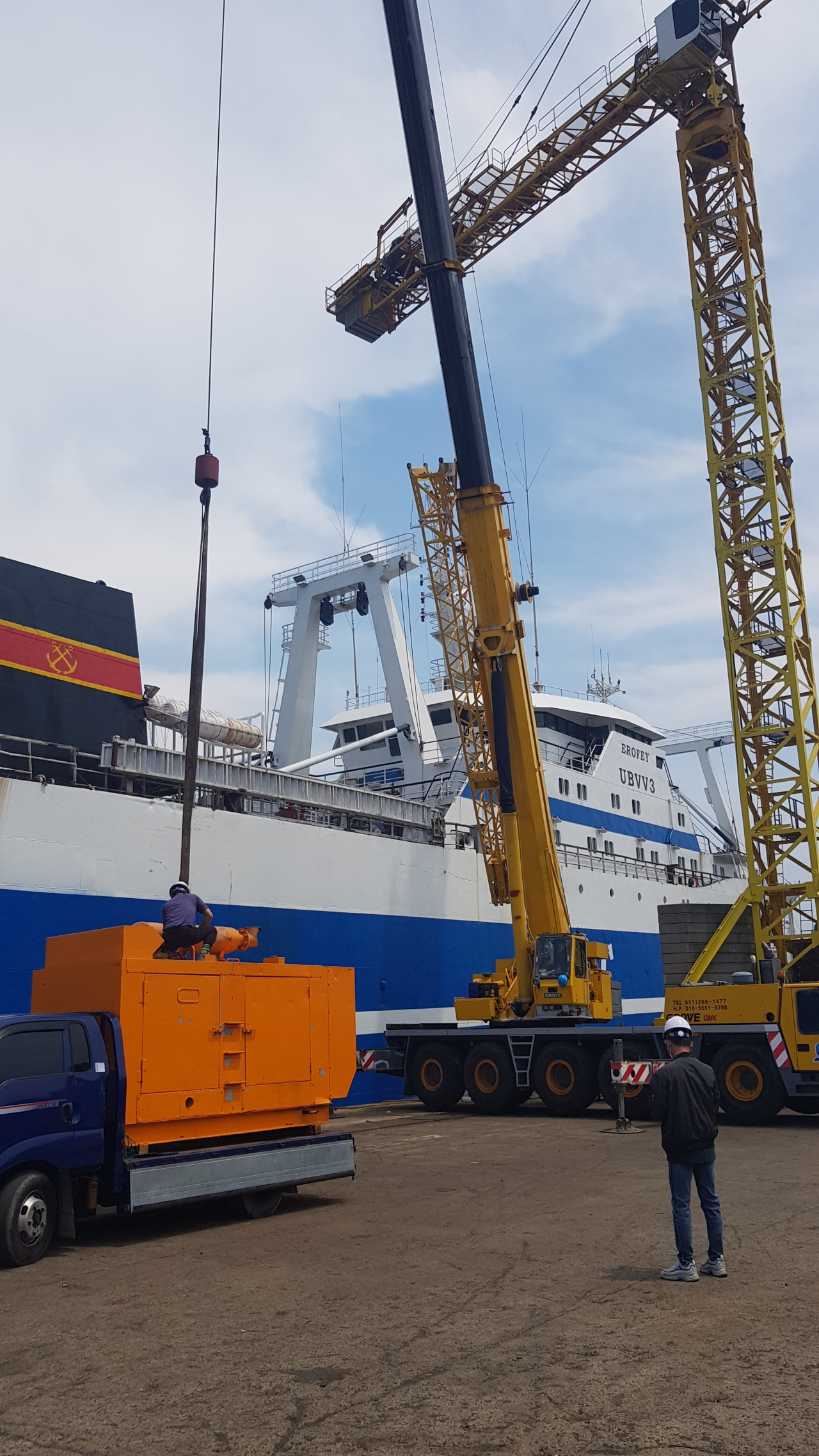 감천항 선박용 발전기 적재현장