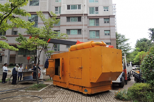 아파트 재해 복구 현장에 비상 발전기 임대현장